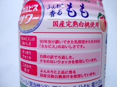 もも味カルピスをソーダで割っただけっぽいけど、アルコール分はちゃっかり4%だから飲み過ぎに要注意