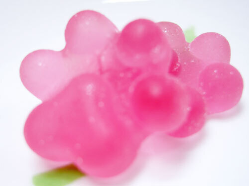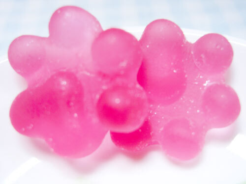 しっかり固めのピンクのグミはピーチ味。かなり香りが濃厚でクンクンするとほわぁ~~んってなる。(意味わかる?わかんないかな。[バッド(下向き矢印)])桃の香りってリラックス効果があるからかな?