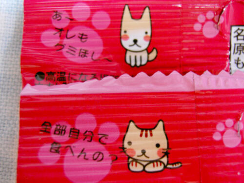 いきなり何個かの肉球を口に入れて思いっきりにゃんにゃん噛むなんて、だめ。そーゆーのは他のグミでやる行為です。