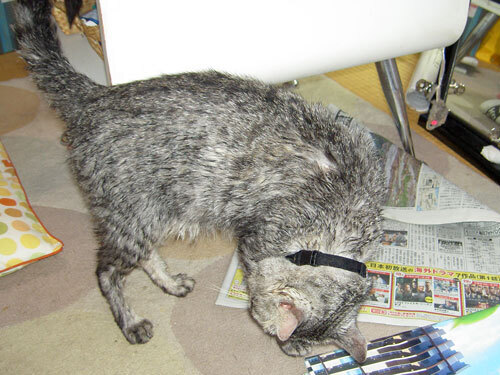 濡れたニャンコって、ホント貧相になりますよね(笑)