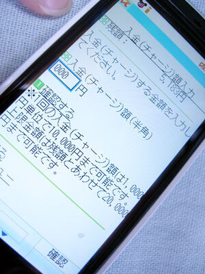 ここで、入金(チャージ)額欄の「000」円となっているテキストボックスを選択する。