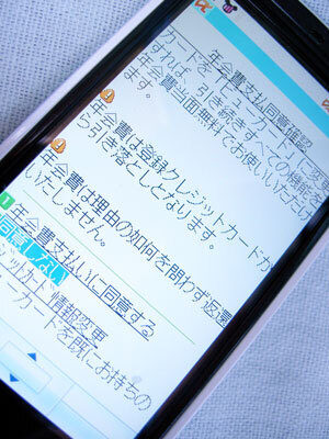 チャージ画面をさかのぼる(前の記事では10番目の画像)と、お知らせ画面で、クレジットカードの情報の更新を促しているが、ソコを無視していることが分かる。