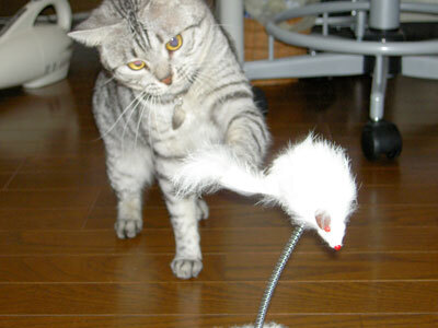 なんか、玩具の使い方が間違ってるような気がする。もっとクレイジーにとびかかってハイテンションで遊ぶのかと…。(^▽^;)