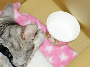 今日のおやつはぺろりんヨーグルトにゃ。