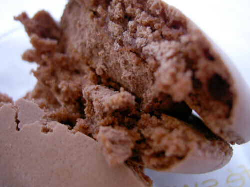 生地の外側はさっくり、中はもちっ。マカロンの王道を行く生地です。チョコ味だけど本来のアーモンド味が効いていて食感もお味も本格的でよくできていると思う。
