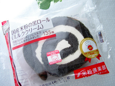国産米粉の黒ロール(ミルククリーム)、135円。