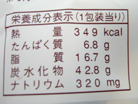 カロリーは349kcal、コテコテの割には低め。植物性油脂だからかな?