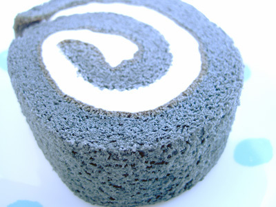 竹炭が入ってるから黒いんだね。俺のロールケーキの真っ黒とは色の系統が違うね。