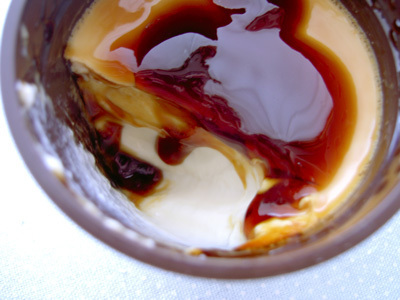 すでに湧き出してコールタールのようだ。いや、湧いてるんじゃなくて上に乗せられているんだけど。このタイプはお皿にプッチンと出せないね。