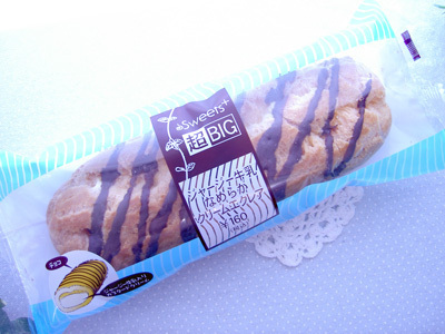 超BIG・ジャージー牛乳なめらかクリームエクレア、160円。ファミリーマート、Sweets+(スイーツプラス)ブランドのエクレアです。