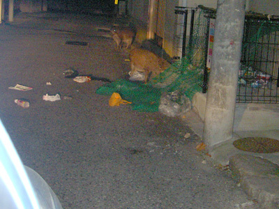帰り道、住宅地のごみステーションに柴犬くらいの生き物が2匹…。