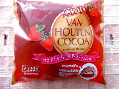 「【バンホーテンココアとのコラボ商品】ほのかな酸味のいちごホイップクリームとバンホーテンココア入りクリームをココア味のシュー生地に詰めました。ココアといちごの酸味がマッチしたデザートです。」ファミマの商品詳細より。