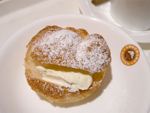 生シュークリーム とカフェラテのセット、500円。サンマルク・カフェにて。