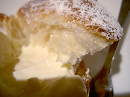 甘さ控えめでとろりとしたクリームはミルキーで、なかなかあっさりと美味しかったです。美味しいけど「パン屋の仕事」だね。(しつこい?)付いてくるフォークで食べるのは至難の業だよ。