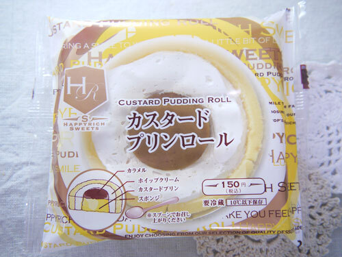 カスタードプリンロール、150円。 ミニストップ、HAPPYRICH SWEETS(ハピリッチスイーツ)ブランドのロールケーキです。