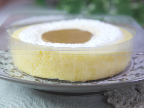 ホイップクリームとプリンを、卵たっぷりのふんわりしっとりとしたスフレ生地でやさしく包みこみました