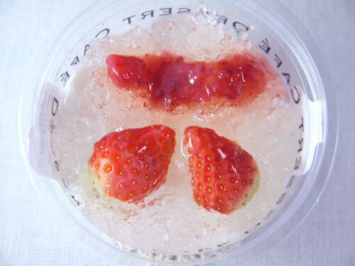 クラッシュゼリーとイチゴ&イチゴソース、おしゃれですね。