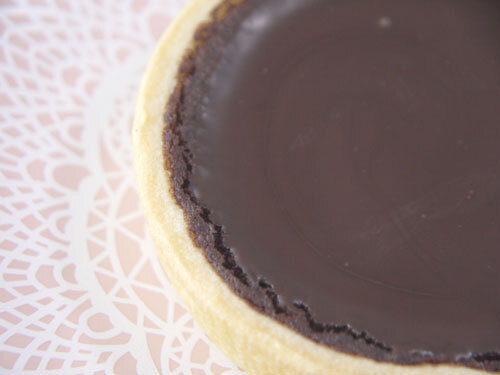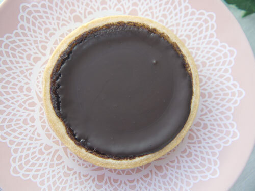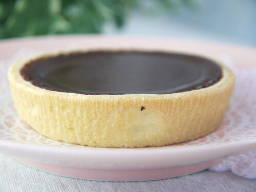 カカオの香りと、バターっぽい香りがそそってきます~。このタルトカップは製造メーカーのエフベーカリーが作っているのではなく製菓材料会社から完成品を仕入れているのだ。そこにチョコレート生地を流して作られている。