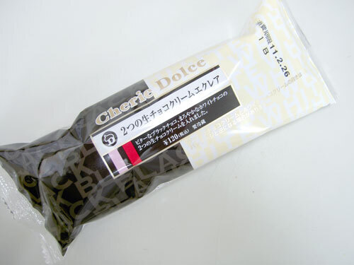 2つの生チョコクリームエクレア、120円。サークルKサンクス、Cherie Dolce(シェリエドルチェ)ブランドのエクレアです。