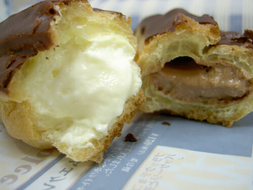 チョコエクレアは、ただそれだけでも美味しいのに・・・中に二種類のクリームが入っている。。。