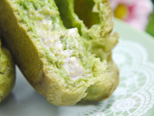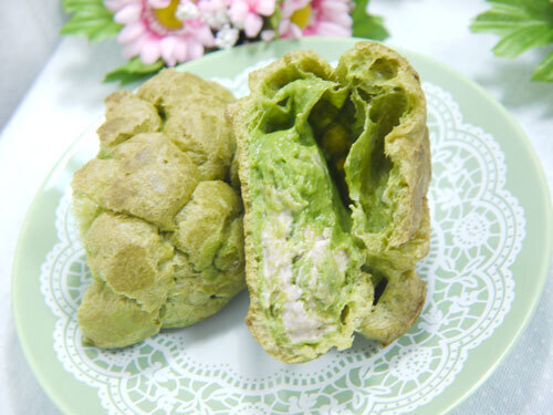 シュー皮の内側と抹茶カスタードは退色していないので鮮やかな緑。