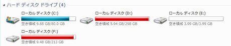 「ライブラリ」はFドライブにあったんだけど、それがいっぱい。真っ赤っかです。