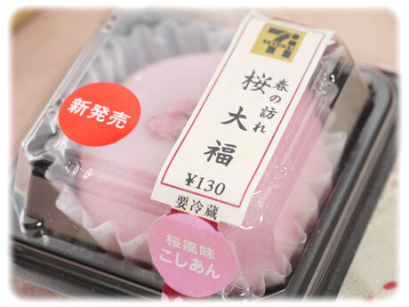 「春を感じさせる、かわいらしいピンク色の大福です。桜リキュールを加えた柔らかな餅生地で、なめらかな口当たりの桜風味のこしあんを包み、塩漬けにした桜の花びらを中央に添えました。(1食あたり160kcal)」セブンイレブンの商品情報より。