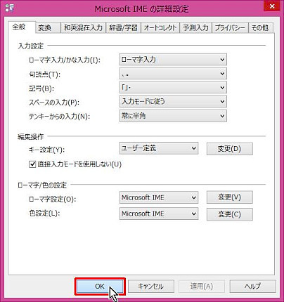5. [IME-オフ] をクリックします。