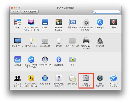 2.[起動ディスク]をクリックします。