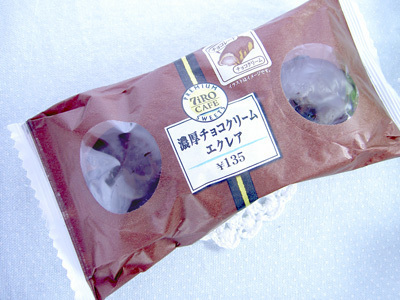濃厚チョコクリームエクレア、135円。セブンイレブン、7iIRO CAFE(なないろカフェ)ブランドのエクレアです。パッ...
